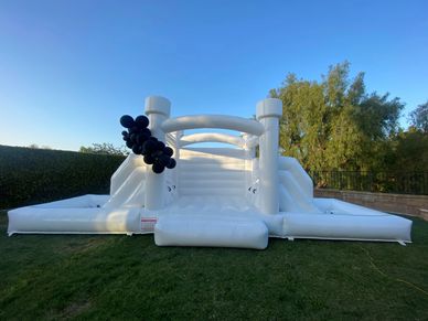 Bounce Size: 10' Ball Pit size: 7'. Includes: Blower, 25ft Extension Cord. Tarp. Rule Sign. White/Clear Balls with choice of adding color balls to ball pit.
